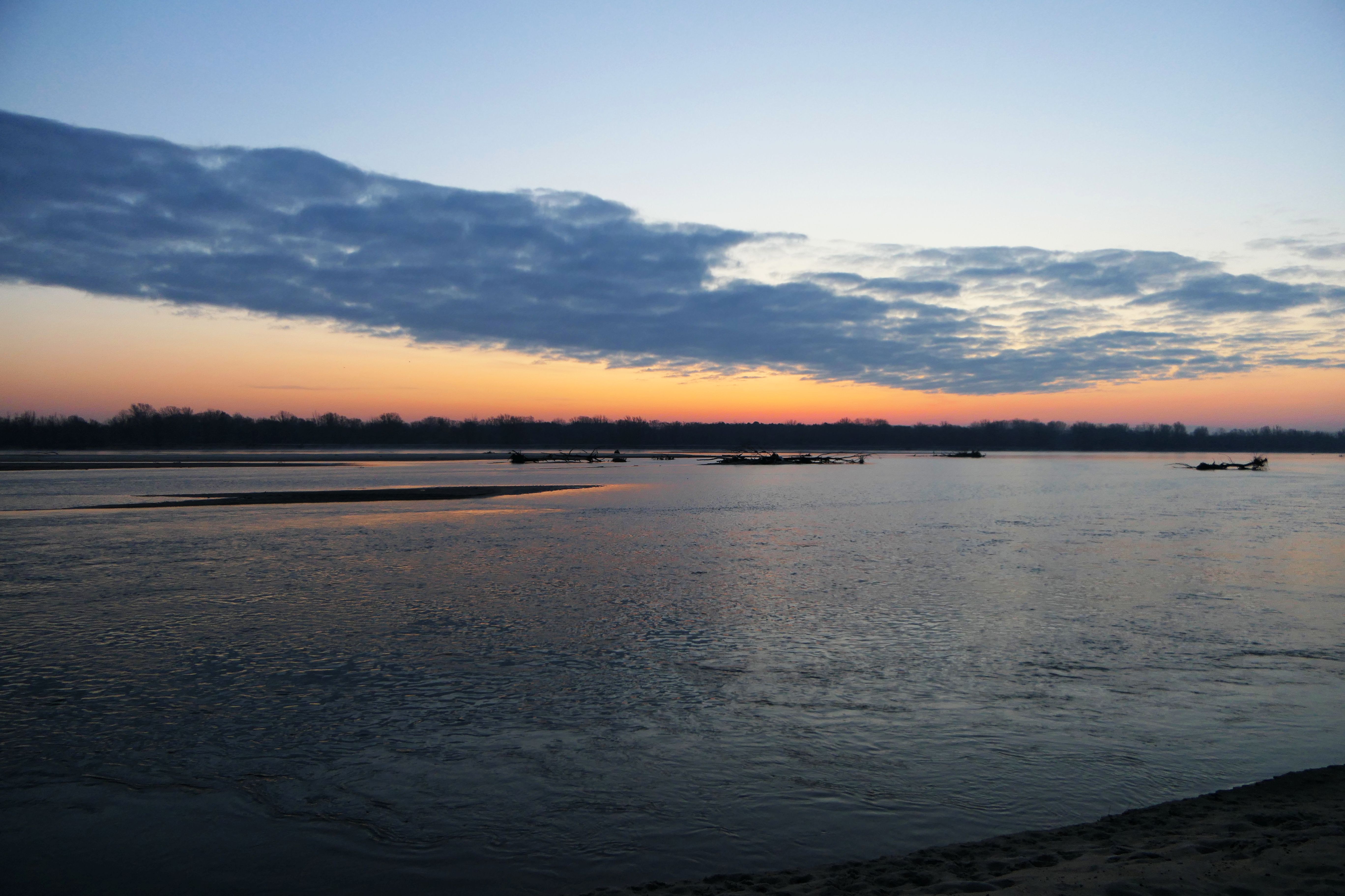 Tym razem idę na północ. Skrajem podmytego brzegu. Flauta. Żadnej fali. W odnodze nurtu swawolą rapy, rozbryzgując wodę. Nie próbuję ich fotografować. Czas naświetlania za długi. Nieco dalej nurt odbija od brzegu. Odnoga coraz płytsza. Widzę rzeźbione dno. Ustępująca rzeka obnaża naniesiony muł. Mgła zasłania krajobraz roztokowej Wisły, rozpuszczając kontury nowych wysepek, naniesionych wezbraniem drzew, tłumiąc dźwięki samochodów po stronie Otwocka. Schodzę na mokrą plażę. Niewidoczne mewy chichoczą nad głową. Misterium świtu nieosiągalne. Mgła niczym całun. Słońce jej nie przebije, chociaż to jego pora. Jest za to jakoś tak… mimo że kije do trekkingu i do podpierania aparatu grzęzną w piasku a buty wydeptują ślady podchodzące wodą. Im bliżej nurtu tym wyraźniejsze. W zanikającej zatoczce figlują krzyżówki, kwakaniem rozdzierając materię ciszy. W pewnej chwili lecą ku mnie. Obiektyw jednak nie chwyta ich ulotnych sylwetek bez konturów.
